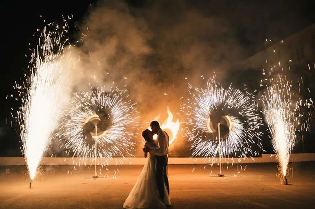 Наземные пиротехнические композиции из огненных вертушек являются единственной возможностью использовать пиротехнику, если свадебное мероприятие проводится в черте города, если рядом с местом проведения фейерверк шоу нет разрешенной площадки для запуска высотных салютов. Малая зона безопасности наземной пиротехнической вертушки позволяет устроить красочное фейерверк-шоу с множество огненных вертушек даже в собственном дворе между домами, там, где по правилам пожарной безопасности запрещено применение крупных х салютных батарей